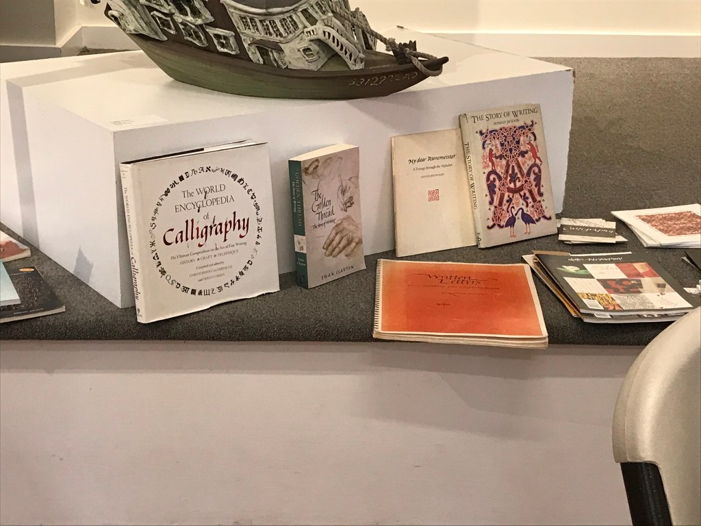 Susan was kind enough to bring a sample of her calligraphy books for us to look at. There’s a lot to learn here. We’ll be back for more.