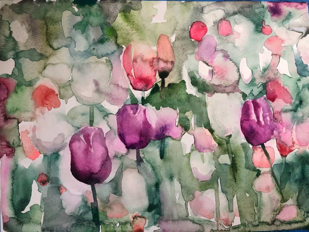 Time to get outside and paint. Generous Gardeners planted 30,000 tulips along The Boulevard in Gloucester and the bulbs are getting ready to put on their show. Sort of a flash-mob plein air, let’s convene at the Fishermens’ Wives Memorial statue around 11 AM on Wednesday and Thursday, May 12 & 13, to put the show on canvas, sketchbook, paper or pad.